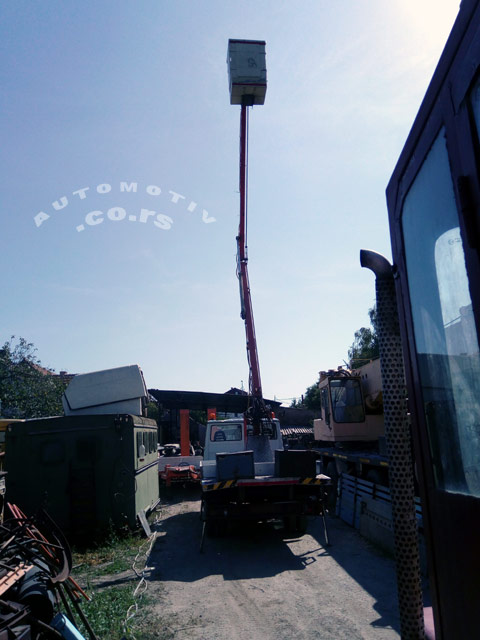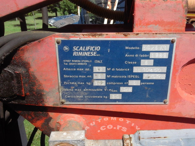 | 9. | DIZALICA | 70-100% - SERVISIRANO - GSR "Scalificio Riminese" - 10/5 A1, max 100 Kg na 11 metara (radna visina) ili 1 osoba + alat i pribor, bočni dohvat 5 m, platforma sa 2 sekcije strele, komande u korpi i na podestu-zemlji |
